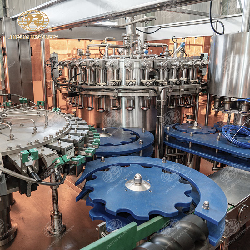 玻璃瓶碳酸飲料生產(chǎn)線上,不僅僅是灌裝部分,還需要其余的自動(dòng)化設(shè)備進(jìn)行配合生產(chǎn),才能完成二氧化碳?xì)怏w飲料的制造。主要采用純凈水用于配料后的口感更好。